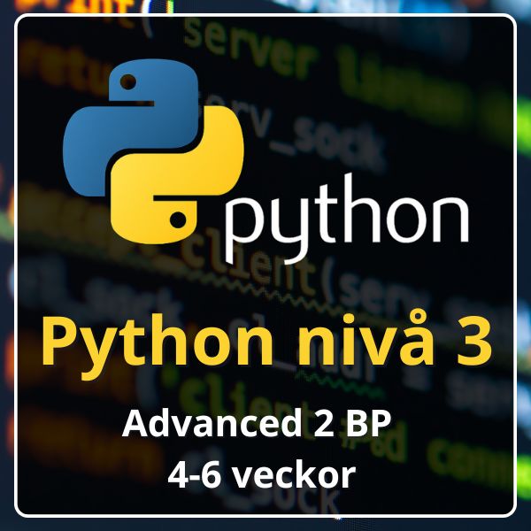 Python nivå 3 är en avancerad kurs för dig som vill skriva strukturerad och professionell kod i Python. Kursen pågår i 4–6 veckor och fokuserar på testning, kodkvalitet och best practices.